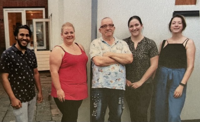 (van links naar rechts; Helal, Baps, Pierre, Patricia en Kelly)